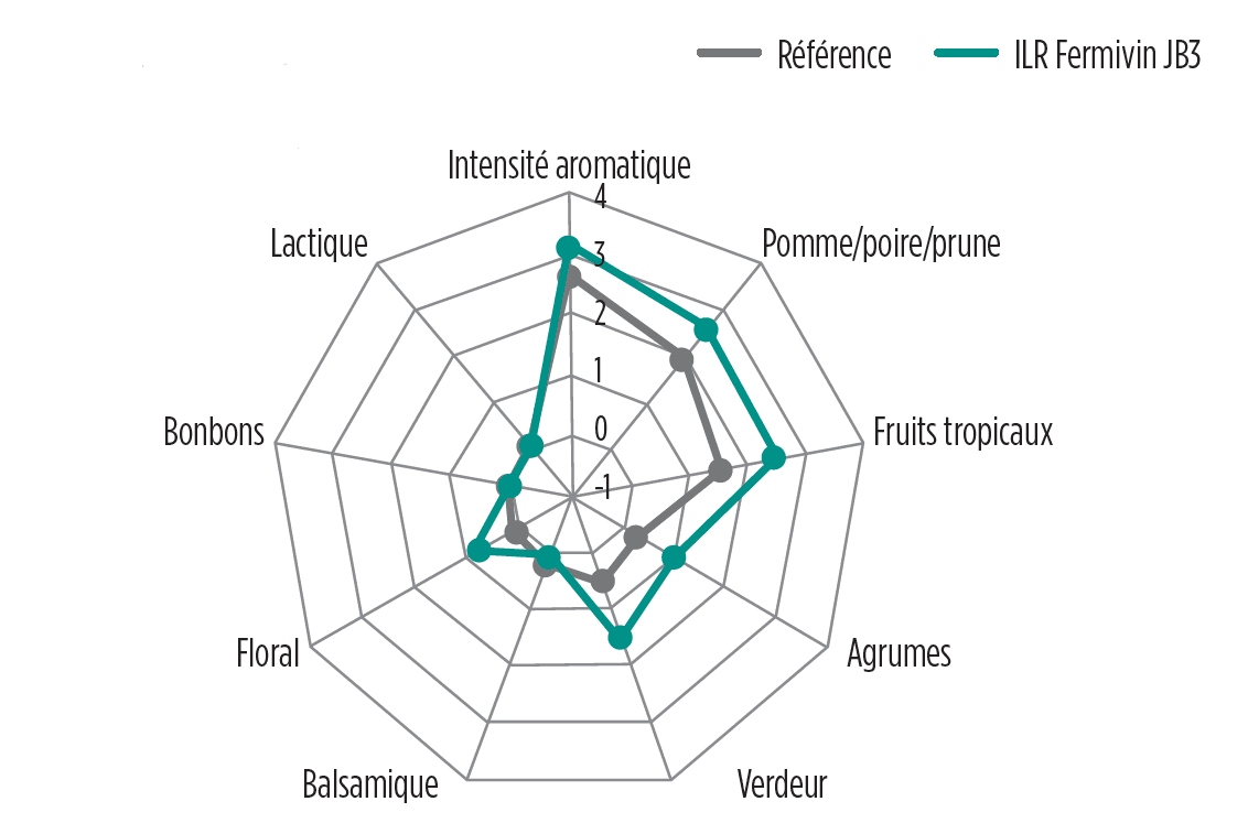Fermivin® JB3 favorise la complexité aromatique des vins issus de cépages neutres ou réputés peu aromatiques (Ugni blanc, Airén, Maccabeu, Chenin blanc, etc.) et permet de fermenter des moûts très clarifiés.