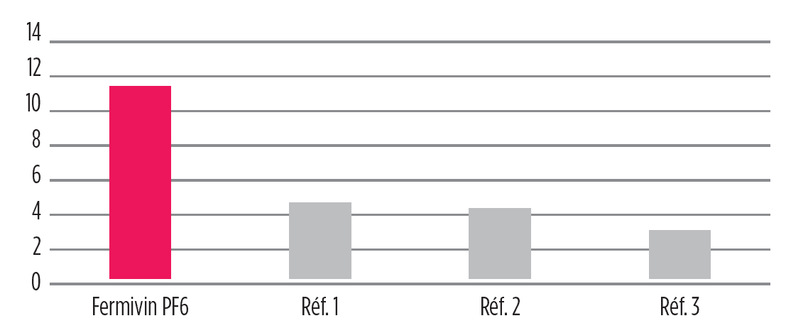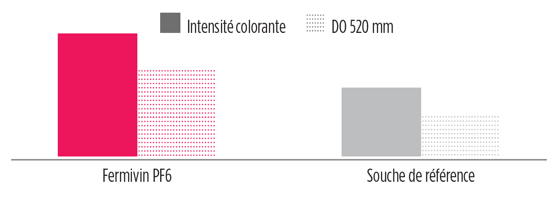 Elle favorise la libération de composés aromatiques en C13 typiques de l’arôme du Pinot noir (β-ionone notamment). L’indice de gélatine faible montre que Fermivin PF6 réduit l’astringence des vins obtenus.