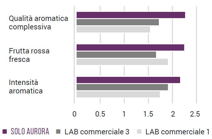 Solo Aurora è un batterio Oenococcus oeni selezionato per la sua capacità di completare in modo efficiente la fermentazione malolattica nei vini rossi e bianchi, migliorando allo stesso tempo il profilo sensoriale e la qualità del vino. Solo Aurora esalta le note di frutta rossa fresca, con corpo, volume e freschezza/acidità.