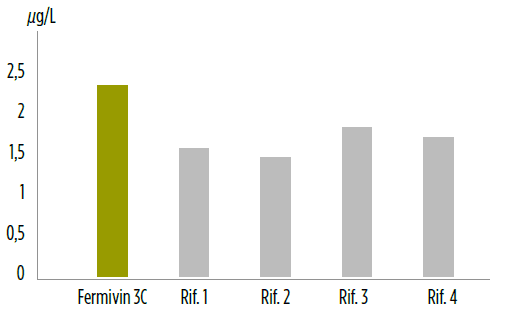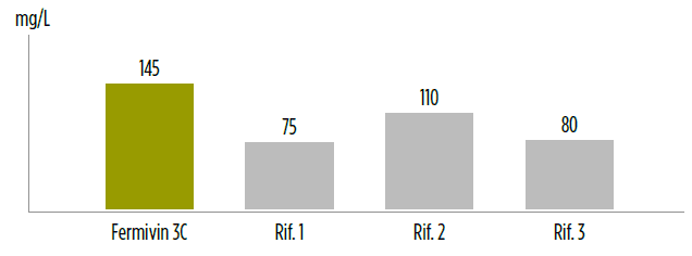 Durante la fermentazione, Fermivin 3C produce molta ß-damascenone, un norisoprenoide che conferisce al Chardonnay il suo aroma di pompelmo, e polisaccaridi del lievito, che possono essere ancora più elevati grazie all’invecchiamento sulle fecce.