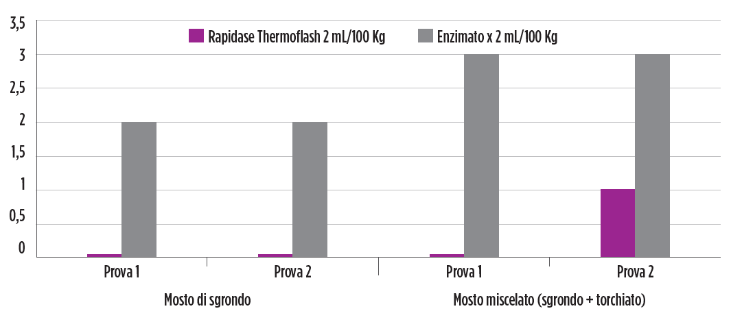 Rapidase® Thermoflash, quando introdotto all’inizio della macerazione, prima o dopo la fase di riscaldamento, è un’opzione efficace. Si tratta di una pectinasi liquida e termostabile, attiva in presenza di elevate quantità di polifenoli.