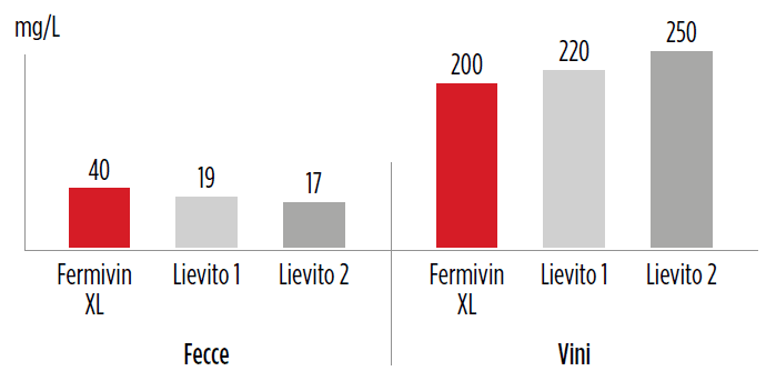 I tannini possono essere assorbiti direttamente dalla parete cellulare del lievito durante la fermentazione alcolica, diminuendone così il livello nel vino e, di conseguenza, la loro maggiore presenza nelle fecce dopo la fermentazione alcolica. Questo meccanismo potrebbe in parte spiegare la rotondità del vino fermentato con Fermivin XL rispetto ad altri ceppi.